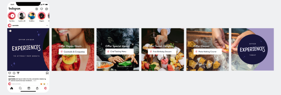 During the height of the Covid-19 crisis, OpenTable launched a new feature called Experiences. It’s not only a new revenue source for restaurants, but Experiences also allowed for safe indoor dining packages. This work was a collaboration with my Brand team, and I was primarily responsible for taking the design system onto social (paid and organic), email sends, and adding animation throughout the customer experience.